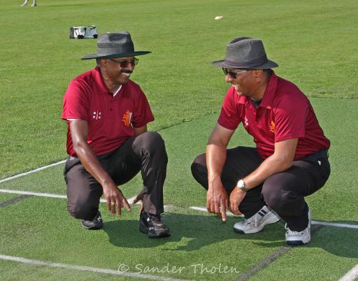 Previous ImageNext Image Deepraj Das, Para Muthucumaru Umpires Das and Muthucumaru testing the wet spot on the pitch Share this: Click to share on X (Opens in new window) X Click to share on Facebook (Opens in new window) Facebook