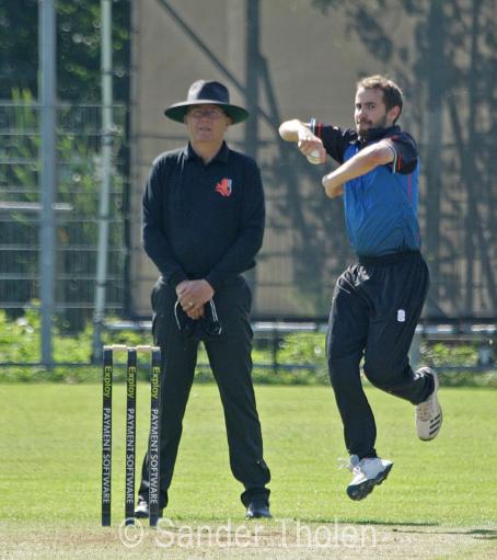 Previous ImageNext Image Leon Turmaine Leon Turmaine bowling, Pim van Liemt umpiring Share this: Click to share on X (Opens in new window) X Click to share on Facebook (Opens in new window) Facebook