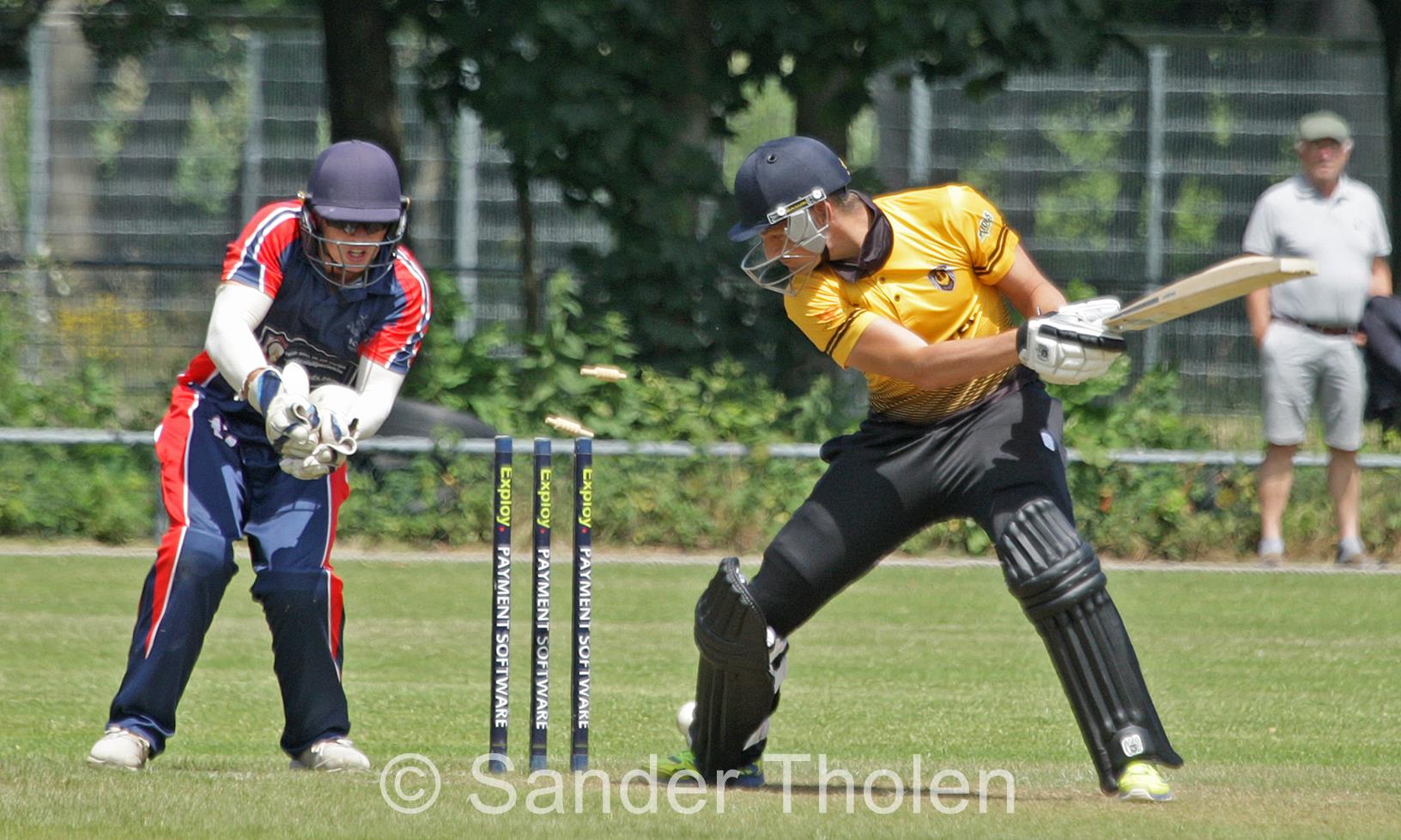 Previous ImageNext Image Tom Heggelman Tom Heggelman chops the ball into his stumps Share this: Share on X (Opens in new window) X Share on Facebook (Opens in new window) Facebook