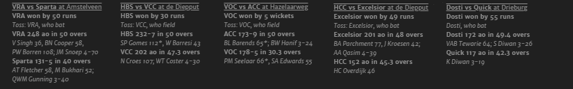 Belated news from Hazleaarweg, where VOC won the toss and invited ACC to bat first.