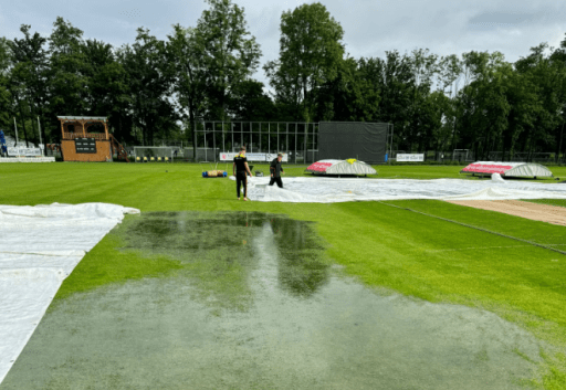 We don’t yet have official confirmation of this, but there’s no sign of actual cricket from the Hazelaarweg, and my guess is that it’s raining again there as well.