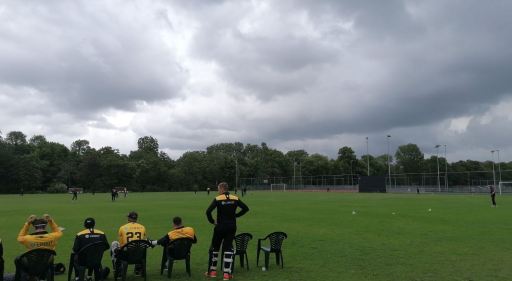 And the first game to be abandoned officially is at ‘t Zomercomplex, where it’s still raining and the umpires have given up the unequal struggle.
